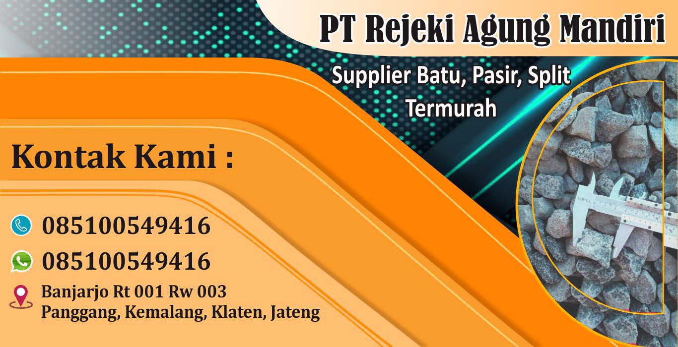 Saat ini PT. Rejeki Agung Mandiri telah berkembang pesat menjadi perusahaan pemasok pasir dan batu split terbesar dari Klaten dengan wilayah distribusi ke seluruh kota besar Indonesia, khususnya untuk daerah JATENG, JABAR, dan seluruh JABODETABEK.